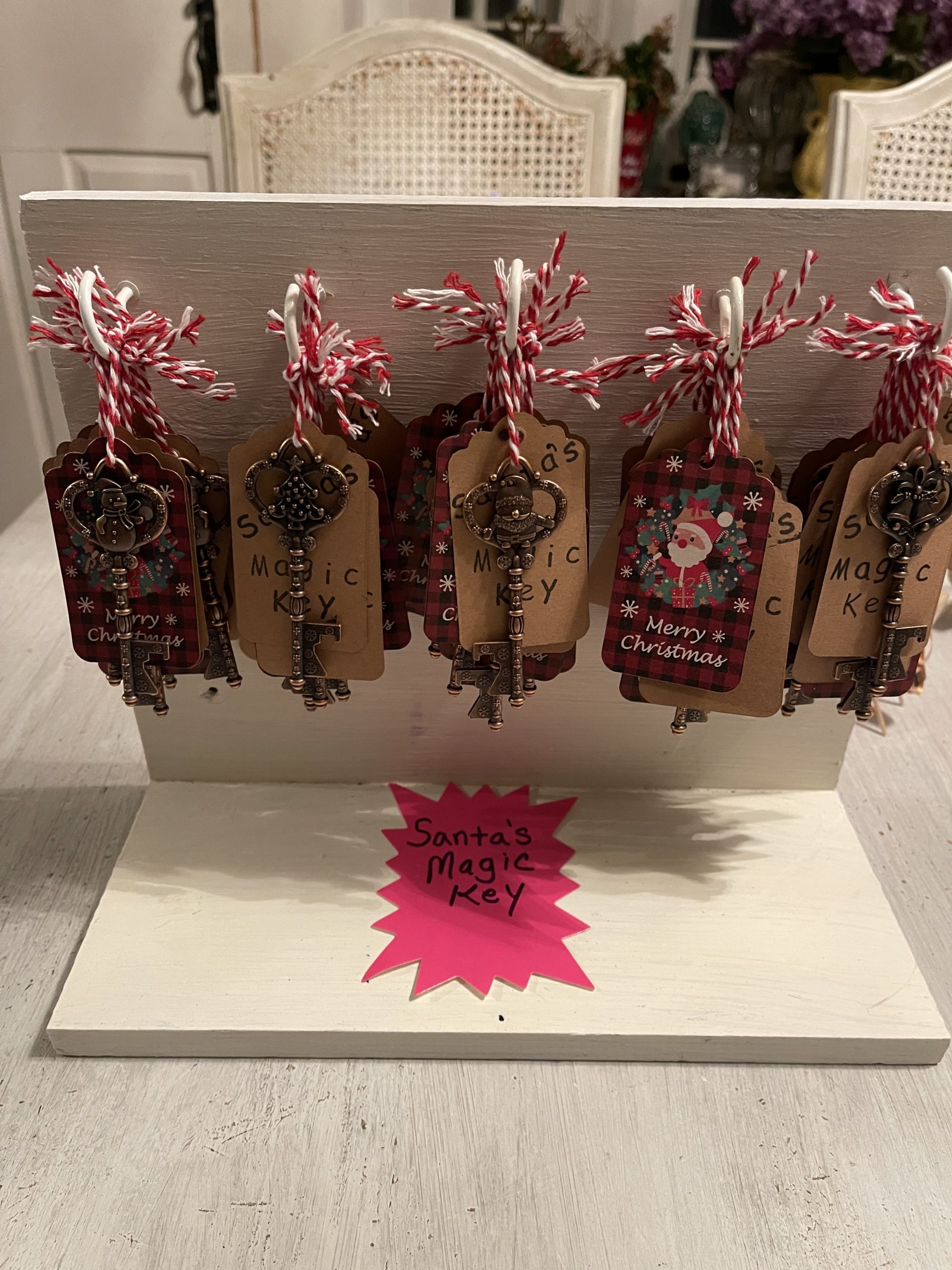 Cute rustic key in 5 styles to choose from. Snowman, Tree, Santa, bells or reindeer